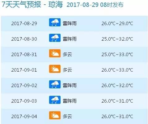 预计2017年9月全省平均气温偏高,降水略偏少。主要降水时段:9月上旬前中期、9月中旬中期、9月下旬中期。预计9月上旬和下旬可能有1~2个热带气旋影响本省。