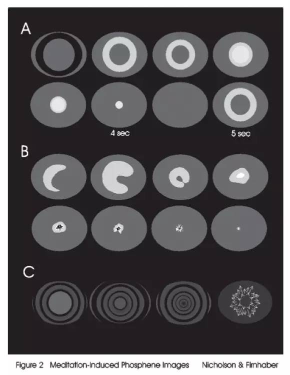 图9 冥想、自我催眠以及向慢波睡眠过渡期间,会出现几何幻觉或内视幻觉