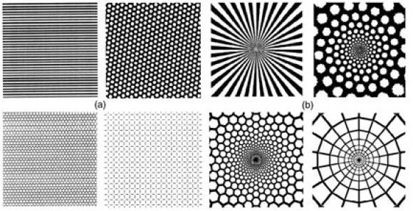图5 简单、重叠的立体光幻视会产生类似于波纹图案中的复杂电波干扰