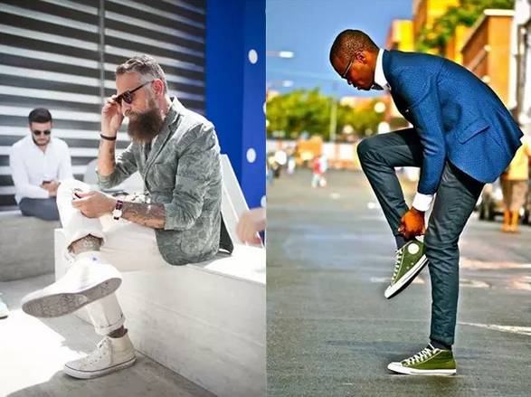 你说你想打造比较正式的感觉?那匡威也可以办得到哦。你只需选择一身休闲的西装,然后搭配一双经典的匡威就好了。