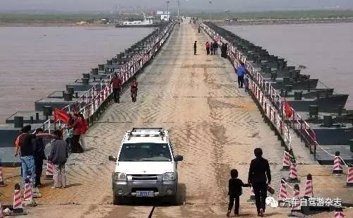 大约十年前,从山西临猗县角杯乡到陕西合阳县洽川镇的黄河吴王两岸兴建的一座联姻浮桥正式通行。桥全长18.1公里,其中浮舟(桥)长600米,两岸引线和连接线(二级标准公路)长15公里,行车道宽12米,浮桥主车道宽8米,由30组钢铁舟船组成,双向行车。最大载重量120吨。