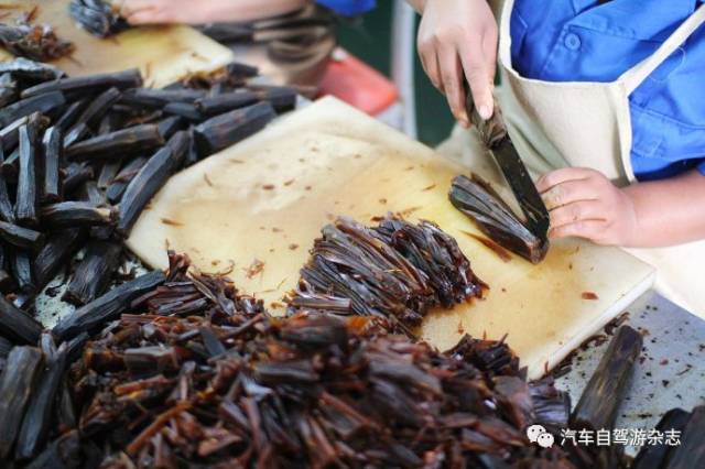 潼关的酱菜品种繁多,但主打的种类还是叫得出几样的,例如常作为送礼佳品的竹篓套装“八宝小菜”,其中就有最典型的笋丝、地留、苤蓝丝、银条、花生米、黄瓜、笋尖、生姜。潼关酱菜中用到的笋即不是蔬菜青笋,也不是山珍竹笋,是当地大量种植的一种铁杆笋,在潼关县城周边的村落通常都能够看到,但比较集中的要数港口镇西南的苏家村了。