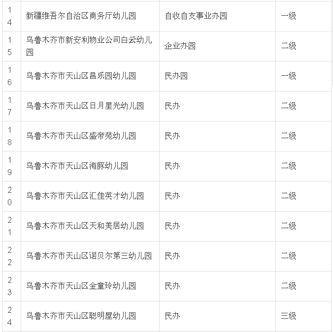 幼儿园具体等级界定共分为三个等级