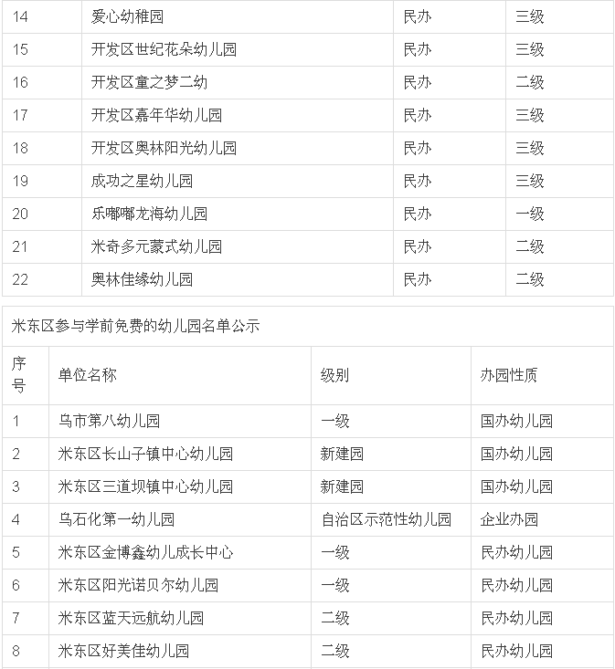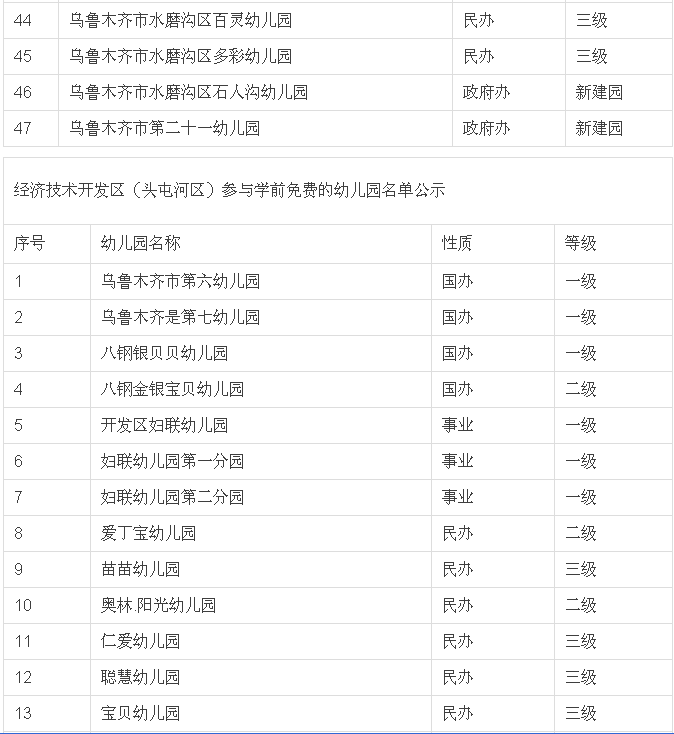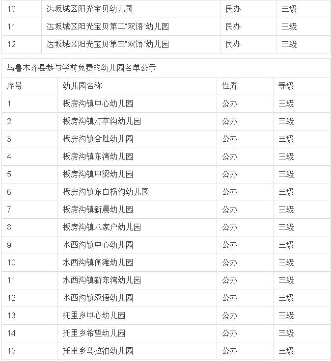 城市幼儿园可享受或部分享受