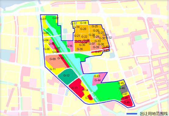 ▲规划用途(亮黄色为住宅用地,暗黄色为商住混合用地,红色为商业用地,粉色为科教文卫用地,暗绿色G-12为体育用地)