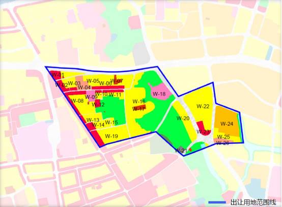 ▲规划用途(亮黄色为住宅用地,暗黄色为中小学用地,蓝色为公交场站用地,粉色为医疗卫生用地)