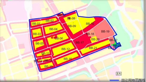 可出让用地12.81ha,其中商业10.11ha(容积率<3.0);商务办公2.7ha(容积率<5.5)。