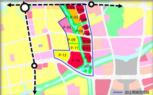 ▲规划用途(红色为商业用地,黄色为住宅用地,粉色为科教文卫用地)