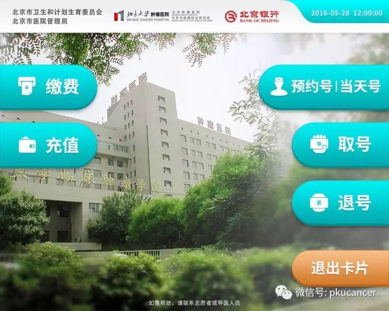 2017年3月3日,北京大学肿瘤医院正式开通京医通自助机自助缴费功能,历经几个月的持续改进,京医通自助缴费功能已稳定,运行情况良好。目前,院内共有25台自助机,除在门诊一层大厅集中分布17台自助机外,其余自助机分别分布在各个诊区及检查科室附近,并配有相应导医人员,省去患者排队及寻找收费窗口时间,非常方便。患者就诊后,持京医通卡或医保卡,可在自助机自助缴费,详细缴费步骤见下图: