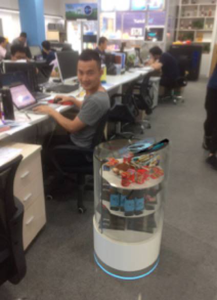 更有这样的自动行走机器人来卖货给你,有一天你在机场,旁边可能滚过来一个这个东西给你推销(视频,清晰度请见谅),注意,它是自动滚过来的,滚过来的……