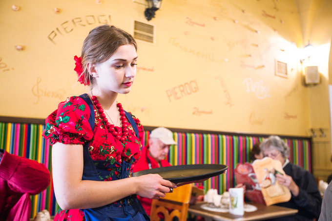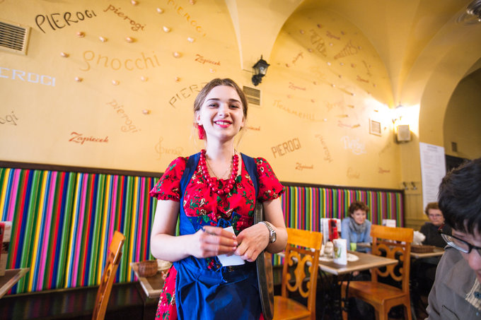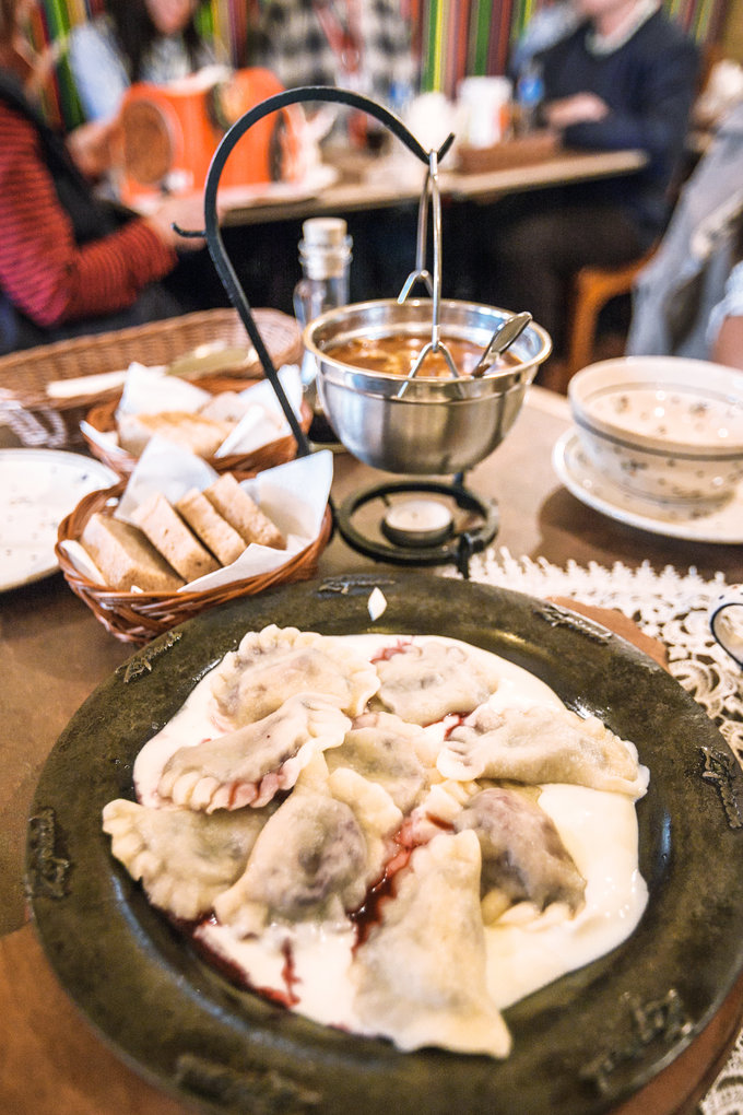 我的价值观里是接受不了甜味的饺子,当然也接受不了波兰传统的怪味饺子。恰巧坐我们邻桌有两个中国人,在波兰出差有段时日,他们告诉我,一定要试试蓝莓饺子,是这家店的特色。我其实满是狐疑,担心他们是爱吃甜豆花和爱吃咸味粽子的人。他们再三坚定,一再表示蓝莓饺子特别好吃,千万别错过。咸味饺子要深重,一般人接受不了。