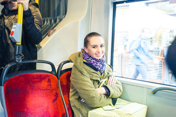 在巴士上碰到了一位美女,她本人很漂亮。我被她的美色所动,一直目不转睛。开始时,她对于我的唐突一直面无表情,即便是我们四目相对时。直到我拿出了相机,问她能不能为她拍一张照片,她欣然接受,露出了好看的笑容。她笑和不笑的样子都很好看。