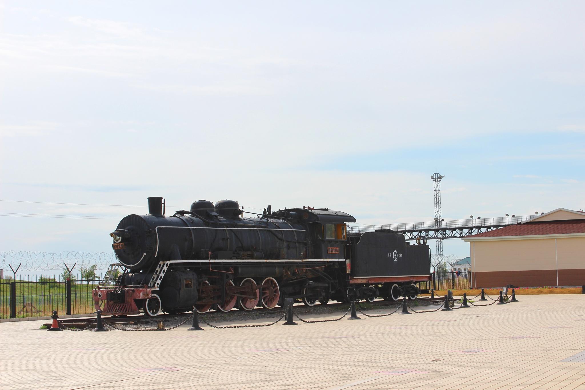陈列在这里的是一台1940年日本制造的“亚西亚”型蒸汽机车,机车下面的铁轨是1925年苏联制造的43铁轨,这台机车在中华大地上奔驰了半个多世纪,演绎了生命里程的“三部曲”,留下了许许多多鲜为人知的故事。建国初毛主席就是乘座这台机车牵引的火车出访苏联的。机车号是 “1861”,“18”代表的是满洲里到俄罗斯后贝加尔斯克的距离,即18里。“61”是代表毛泽东在满洲里期间,曾对驾驶这辆火车头的司机长说过六句话:一定要与苏联同志搞好友邻关系,一定要注重少数民族地区的相互团结,一定要保障军用列车的安全,一定要多学文化,一定要克服天气寒冷带来的困难,一定要注意身体。毛主席回国后,向全国人民发出了建设社会主义新中国的伟大号召。从1950年到1965年,这台机车欢快地驰骋在祖国建设的钢铁运输线上,立下了不可磨灭的功勋。因此,满洲里人民又命名它为“满洲里号”。