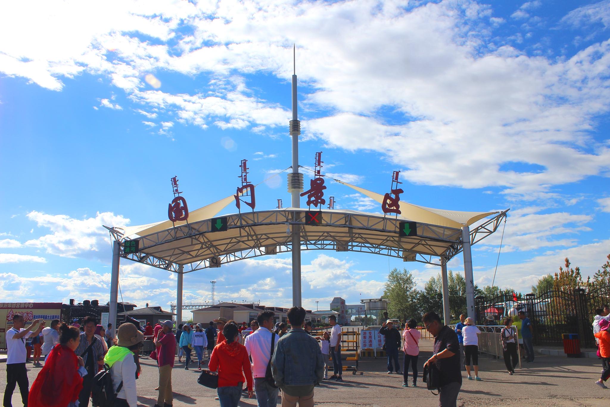 熙熙攘攘的国门景区。从婚礼宫出来后,沿五道街一直走到尽头就是国门景区。在外面转一圈就走了。