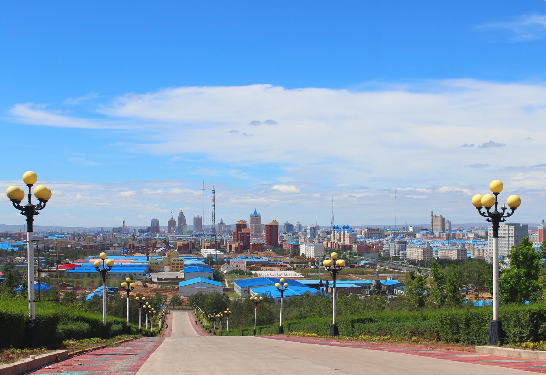 在婚礼宫前远眺满洲里市区