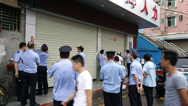 6日下午,来自龙城派出所的几位警察给几家小型中介公司贴上了封条。