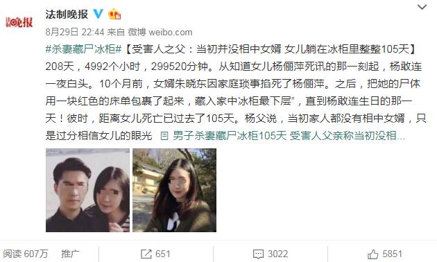 原标题:杀妻藏尸冰柜105天! 受害人父亲:当初并没相中女婿,过分相信女儿眼光