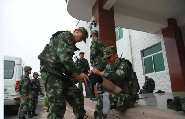 出任务前,郑明岗在战友协助下再次稳定假肢