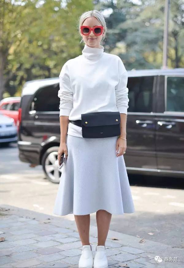 范主觉得Off-White的腰包更像一条腰带,系在身上很有收腰效果,而且包包比较硬挺,搭配外衣还挺帅~