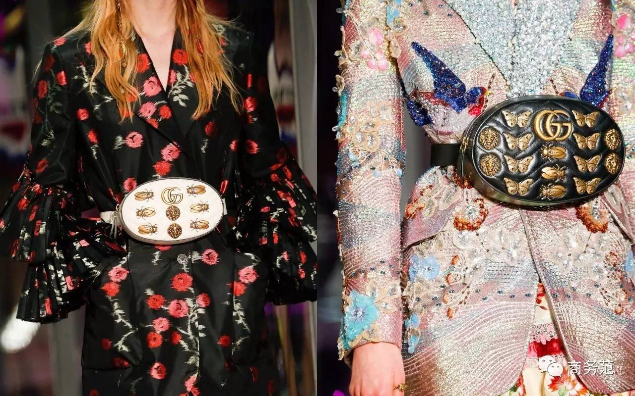 18早春系列,Gucci继续推出了很多腰包,款式也有椭圆形和布袋好几种,颜色和材质更多,椭圆形很优雅,更像是一件配饰~