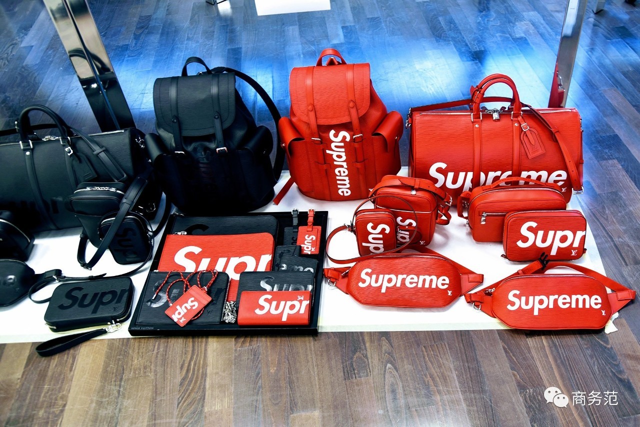 而这次跟LV合作款画风是这样~依然保留Supreme大标识,但是材质和样式更多使用了LV的造型~奢华中透着街头元素。