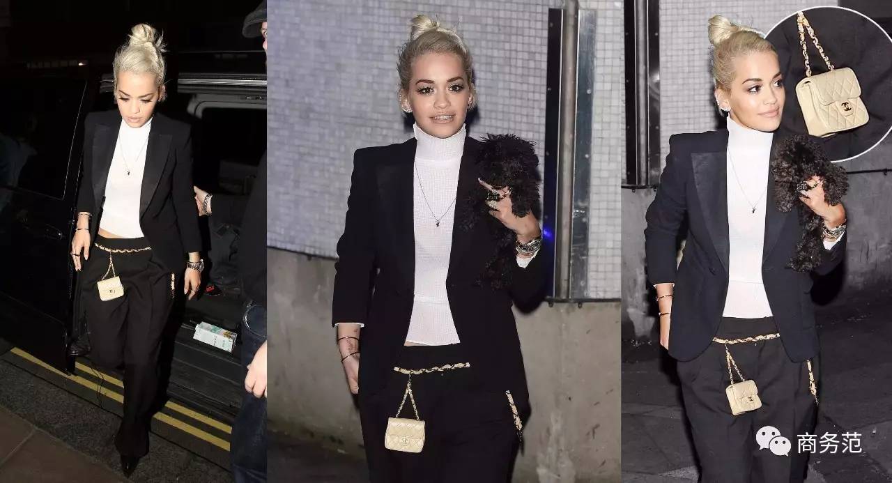 Rita Ora也常背一只奶油色超迷你chanel腰包,价格2w左右,特别小巧可爱,这么小,除了装饰作用,啥也装不下~