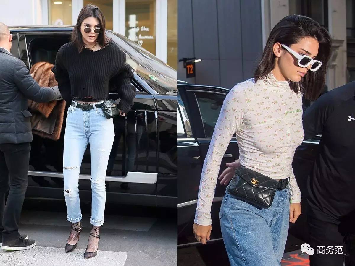 国际带货王Kendall Jenner就特别喜欢Vintage Chanel,平时街拍中出镜率极高,加上日常穿衣也很休闲,背个腰包整体很协调~
