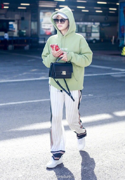 这次郑爽是和妈妈一起出行的,真的,这样一对比,我觉得爽妈反而比较有偶像包袱!爽妈一身打绿色连体裤,还有一条白色串珠的项链,差点我就以为一边的郑爽是个小助理了。可能是提前知道了机场会有人拿相机拍自家女儿,所以特别打点了一下自己。