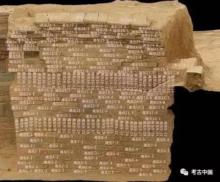 由于D17M1规格较小,甬道窄。仅用单张照相技术无法展示其各个单位全貌。故首先将D17M1进行局部拍照,利用PhotoScan软件三维建模。再由三维建模导出的该墓墓室各墓壁、甬道各壁、棺床、地砖等正射影像上分别进行编号。试以墓室北壁(图八)东壁(图九)甬道东壁编号(图十)为例说明,如下图所示:
