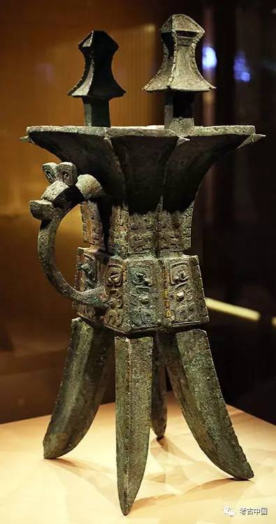 分期与年代 殷墟文化的分期问题早已提出,30多年来,考古工作者进行了研究,在甲骨、铜器等方面成果尤大。中华人民共和国成立后对郑州商代遗址和殷墟的发掘,为解决殷墟文化的分期奠定了基础。50年代末即有学者进行殷墟文化的分期研究。1959年,根据大司空村的发掘,将殷墟文化分为两期,后随发掘资料不断增加,在此基础上又分为4期,即大司空村一至四期。小屯和其他地点的发掘,证明这4期遗存基本上代表了殷墟文化的发展序列。各期的主要特征是:①第一期陶器以灰陶为主,也有红陶和刻纹白陶等。花纹多为绳纹。炊器除鬲外,还有夹砂罐。有一种陶鬲呈长方体,裆与实足较高,饰粗绳纹,另有一种小口窄沿、鼓腹的鬲,饰细绳纹兼环络纹。其他器物有豆、簋、盆、圜底罐、大口尊等。铜器种类较少,食器仅见鼎一种,酒器有斝、爵、觚、罍、瓿等,花纹以饕餮纹为主,也有夔纹,未见铭文。②第二期陶器亦以灰陶为主,红陶极少,刻纹白陶多见。一般实用陶器大体继承第一期。长方形陶鬲腹稍深,三足较矮,胎变厚,绳纹变粗,饰环络纹鬲盛行。罍、瓿少见,出现圈足大口尊及将军盔形器。铜器在继承第一期的基础上有很大发展,新出现罐形鼎、鬲形鼎、甗、簋、壶形盉、方爵、卣、斗等,纹饰方面,出现了蝉纹、蚕纹、云雷乳钉纹、变形夔纹及三角纹等。少数铜器出现铭文,多为族徽及其他图形文字,笔道刚劲,无波磔。③第三期陶器变化较大。绳纹普遍加粗。陶鬲近方体,裆与实足较矮,胎厚,绳纹粗,出现了侈口高颈、表面饰细绳纹的鬲和形体较小、表面饰弦纹的小陶鬲。常见弦纹簋,新出现一种饰三角绳纹的陶簋,此外有豆及泥质红陶的圜底罐等。铜器亦发生很大变化,一期习见的锥足鼎绝迹,柱足鼎、罐形斝、凸底爵常见,方罍、方彝、觚形尊、觯、贯耳壶、附耳盂等在此期内渐盛行。花纹种类如前,但细部有较大变化,三角纹普遍。有铭铜器仍少,铭文笔道开始有波磔。随葬明器增多。④第四期陶器中泥质红陶增多,除盛行三角划纹外,新兴网状划纹。陶鬲体扁宽,矮裆,无实足尖,表面饰粗绳纹,高颈鬲和饰弦纹的小鬲裆也变矮,实足较小。弦纹簋已不见,表面饰三角绳纹的簋为数最多。灰陶豆不见,出现较少的直口浅盘、圈足较细的釉陶豆,红陶罐增多。除上述器类外,还有瓮、罍、瓿等。用于随葬的陶器多为明器。铜器主要继承三期特征,但也有其自身特点。此期兽足鼎出现,鼎、甗的腹部相对变浅,酒器中盛行壶形盉、分裆斝、觚形尊等。铜器铭文变长,字数有达数十字者,笔道多有波磔。