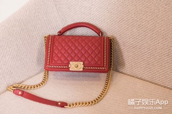 苏青今天背的这款包也是她最近拿下的一款包,这是今年新出的一款Chanel Leboy系列复古链条包,红色包面格纹走线,辅以简单大气的欧式波纹边框设计,方形金属点缀复古范儿十足,集颜值与实用性于一身包款说的就是它!