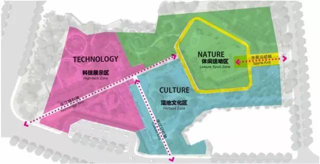 主题公园一期将按照景观及功能不同分为主题科技区、主题文化区、主题运动区三大区域,景观轴线则作为滨江公园带的动线主脉,串联起文化与休闲运动,为市民带来丰富的感官体验。