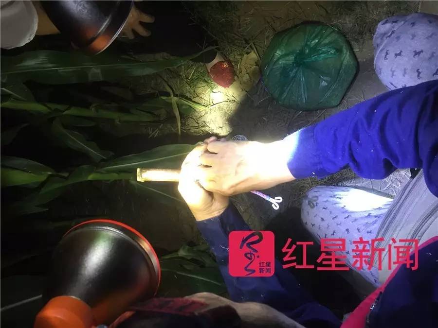 驱车大概半个小时后,一行人在一片青纱帐间的小路上停了下来。董瑞印说,他卖出上万元高价的那只蛐蛐,就是在这一方地里捉到的。之后,是换衣、戴灯、系挎包、理工具、拿诱饵、换鞋子,3名老手整齐划一动作娴熟,3名新手跟着他们学着。准备完毕之后,一行人浩浩荡荡钻进了玉米地。