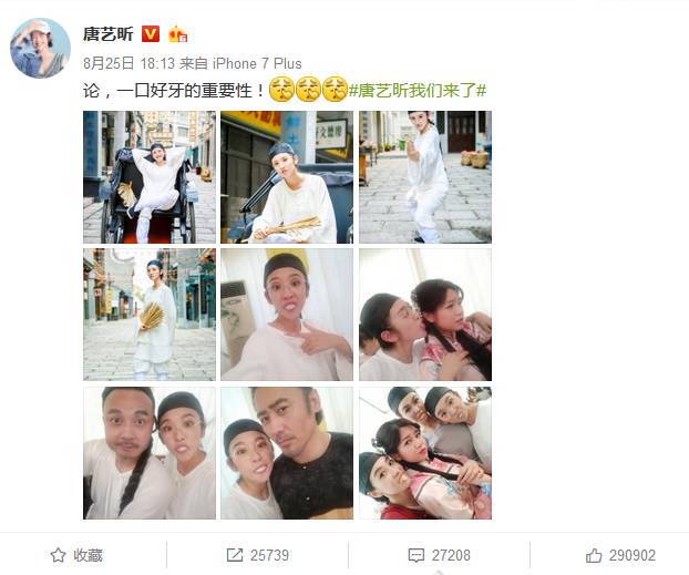 ▲最近,唐艺昕发微博配文 “论,一口好牙的重要性!” 霸屏热搜,照片中“梨涡女神”变身“龅牙妹”,参加《我们来了》的扮相滑稽可爱。