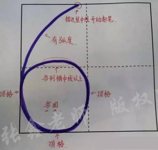 “0”的写法:从上线中间起,作弧线向左碰线,作弧线碰下线,向上作弧形碰右线,作弧形向上与起点相交。