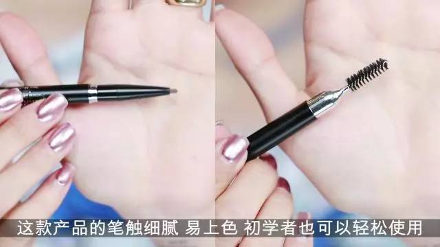 我使用了自然的灰棕色系眉笔。这款产品很细腻,容易上色,配合眉刷轻松画好眉毛,推荐初学者哦~