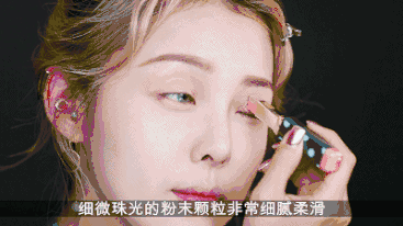 珊瑚色用作腮红,带珠光的颜色涂在高光部位,妆感很自然,是一款多用途的产品。