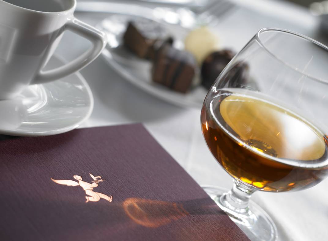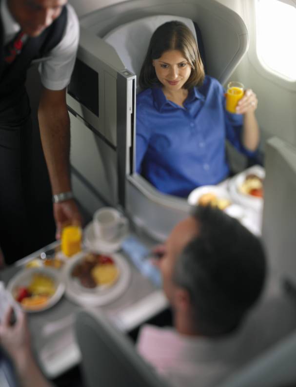 在飞机之上,英国航空公司Club World公务客舱旅客在起飞前,也可与头等客舱旅客一样,享用一杯迎宾香槟酒。此外,他们也能选择由国际顶尖名厨们设计的三菜式正餐或简单冷餐。Club World公务客舱不仅提供Taittinger玫瑰香槟酒(Rose and vintage Taittinger champagne),更有其他6款葡萄酒可供旅客细细品尝。