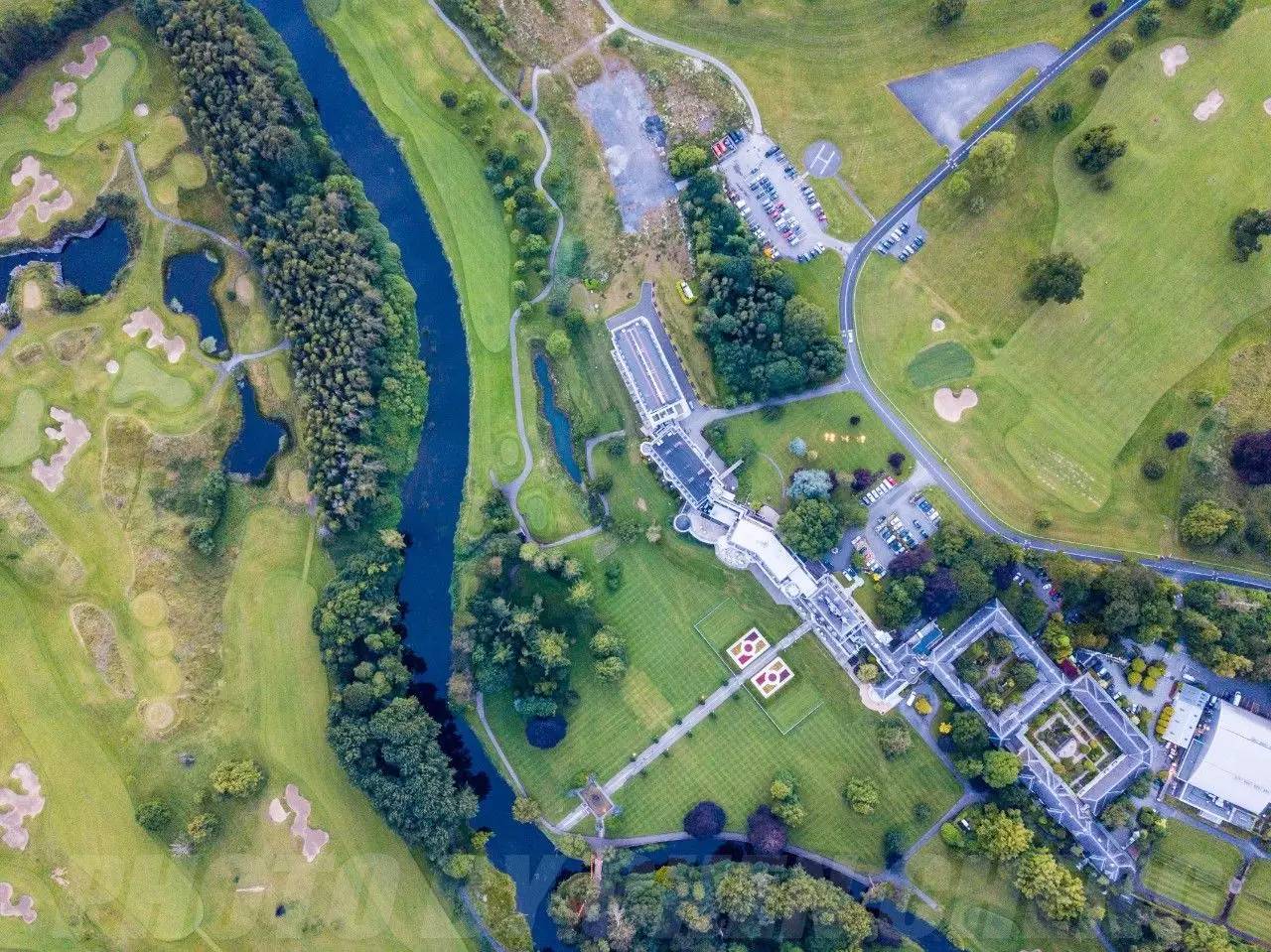 Arnold Palmer与莱德杯球场用河流相隔——跨越桥梁和树林,酒店主建筑的身影已经看不到。这条河流直接连接着都柏林市区,当最早的主人拥有这块土地的时候,所有的食物与日用品都通过河流运抵这里,再送入当年的城堡之中。今天,这条河流则成为了客人们在驾驶高尔夫球车时可以欣赏的景观。