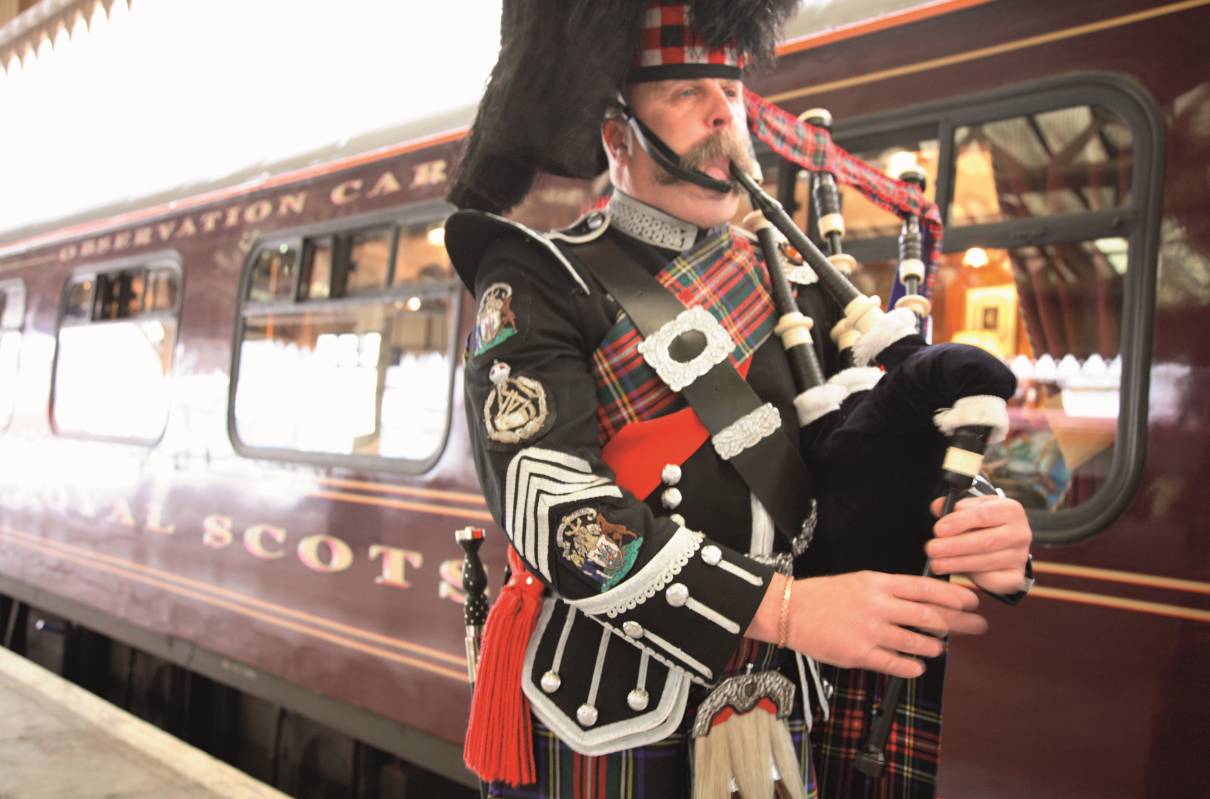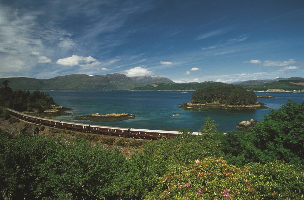 与爱尔兰的豪华列车遥遥相对,在英国的苏格兰,30 多年来皇家苏格兰人列车(Belmond Royal Scotsman)载着游客们穿行在苏格兰乡村里,提供从爱丁堡一路穿越苏格兰高地2 晚至7 晚的行程,沿途欣赏高山幽谷与寂静湖泊的秀美景色。
