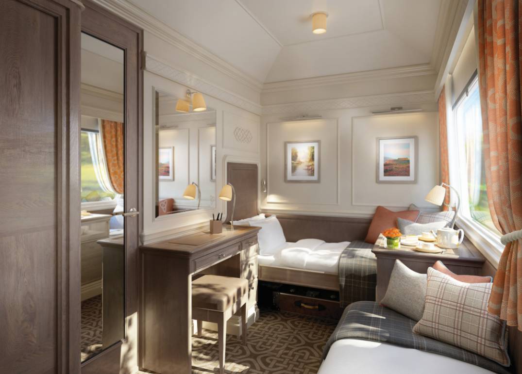 这座“车轮上的乡间别墅”设有装饰考究的套房式包厢,并配有私人车厢服务员;苏格兰风味菜肴为高地之旅提供了不可或缺的美食体验;观景车厢设有开放式阳台和舒适的室内座位,供乘客边小酌苏格兰威士忌,边饱览Kyle of Lochalsh 小村、凯恩戈姆国家公园等沿途景色亮点。