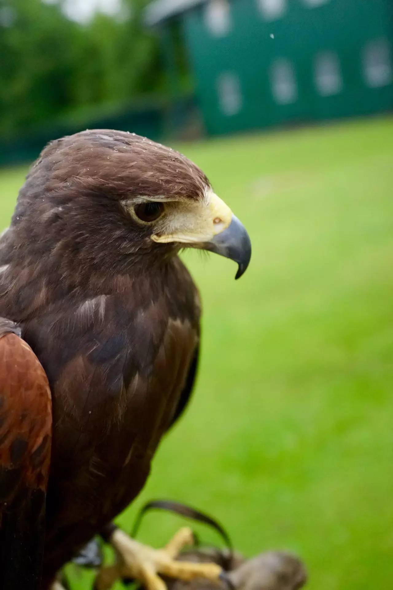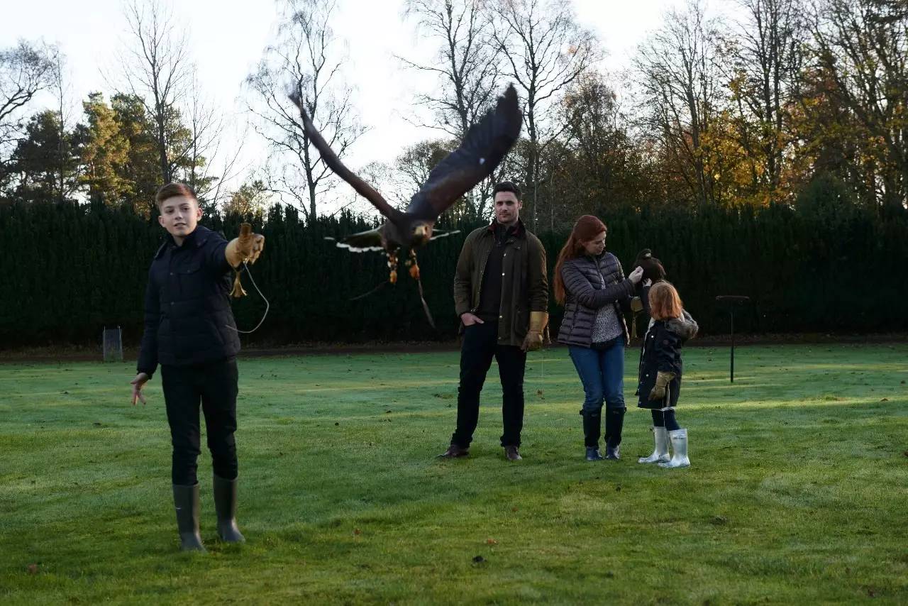 在绵密的雨雾中,披上酒店提供的呢子外套,我们前往酒店的鹰舍。猎鹰是当地最优雅的方式,无须武器,但需要花费大量的精力饲养猎鹰。