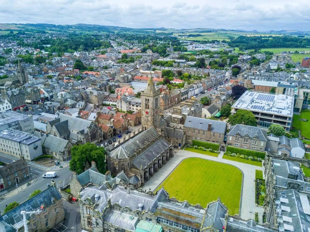 在老球场旁,棕色的建筑内是世界上最早的高尔夫用品商店。走出老球场,数个高尔夫场地沿着海岸一字排开,直到你视野的尽头。从小孩到老人,几乎每个人都会走下场地。登上海岸中心的观景台,你会发现自己被高尔夫的绿色环绕,所见之处都是苏格兰古老的球场。走出球场,古老的修道院与城堡遗址也是这里的必到之处,细雨后偶然的阳光刷新了整个城镇的色彩。