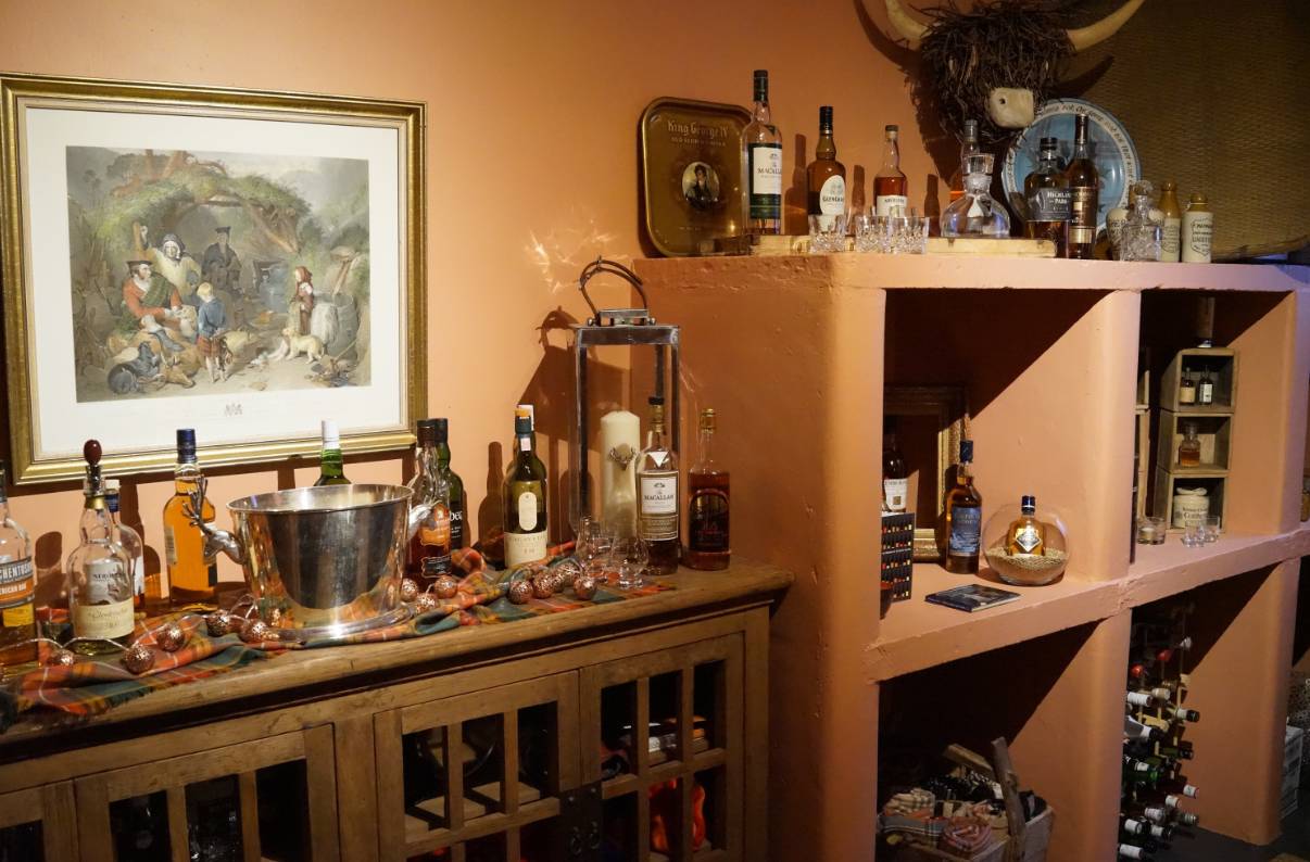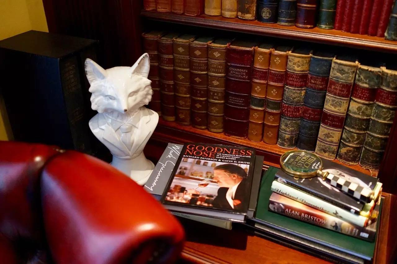 走进隔壁的图书馆,狐狸图案的沙发靠垫与装饰物是女主人特别挑选的物品,从水晶瓶中转到杯中的单一麦芽威士忌带着苏格兰特色的泥熏气息。