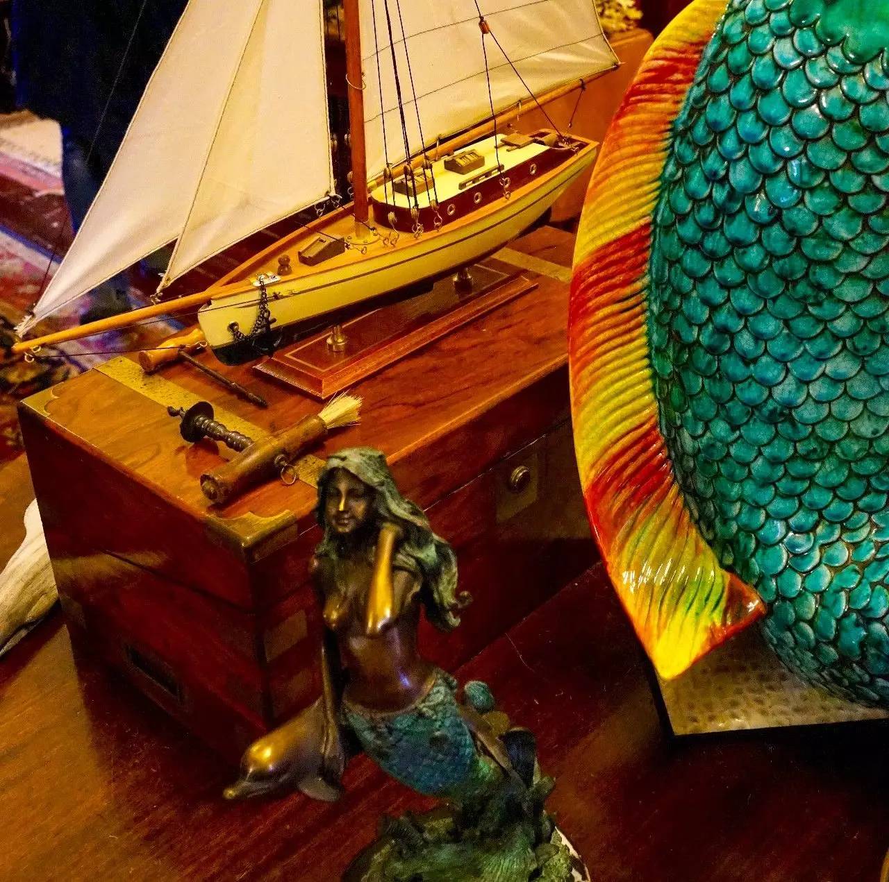 拿起只有拇指大的日本武士模型,你会由衷地惊叹那详尽的细节与色彩。在这里,每个孩子都有自己的空间——从图书馆、体育馆到工作间,其中一位女儿向我们展示了她的半成品——用铜为材料做出的鱼的模型,每一个鳞片都栩栩如生,如同活物,这意味着她拥有经验丰富的金属处理技艺。