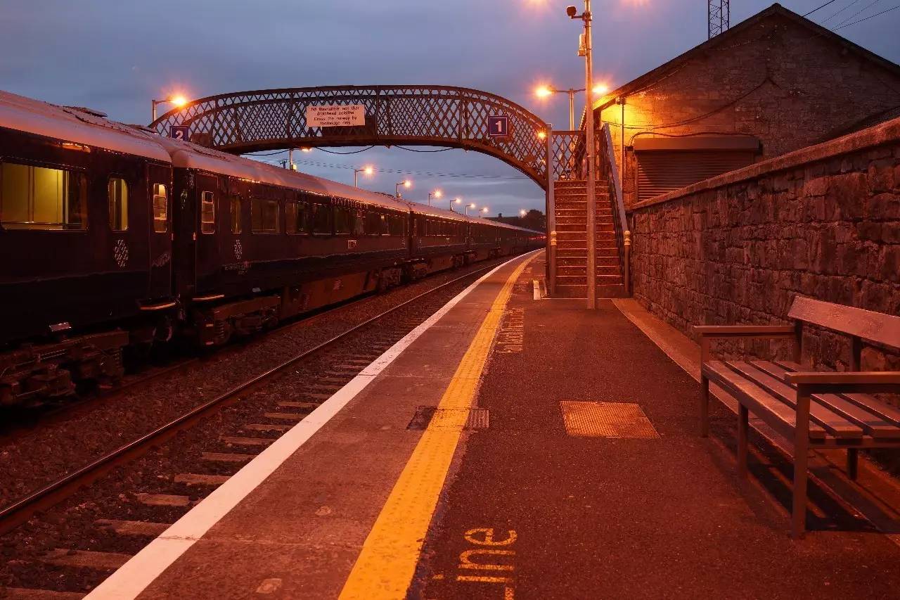 列车旅行最棒的时刻在晚餐后的夜晚,每天晚上列车都会在爱尔兰一处古老的小站停靠,让你的车窗外呈现优雅的古典建筑,但更重要的是让每一位客人都可以得到一晚舒适的睡眠。乐手则在甜点后登车,他们带着吉他与小提琴,演奏爱尔兰的欢快曲调。