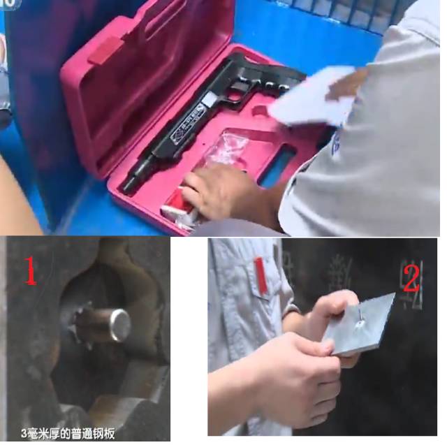 使用钉枪分别射击3毫米的两块钢板。