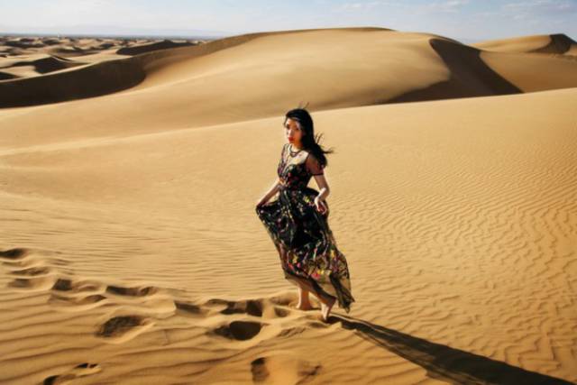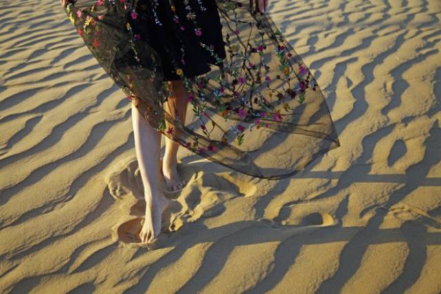 但西斜的阳光是最好的光线,光脚走在沙丘里,在脚尖的沙河光影让我假想自己是沙漠的公主。