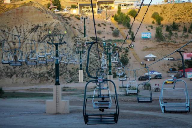 坐上索道,慢慢朝沙漠靠近,突然觉得像时空隧道,靠近了黄色的沙海,司机果然没有骗了我们,进来后就是一座座鲜明的沙山了。