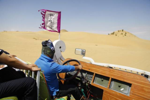 接下来要换乘冲沙车,像船一样的超级车,把我们呜呜呜送到一个沙岛中转站。